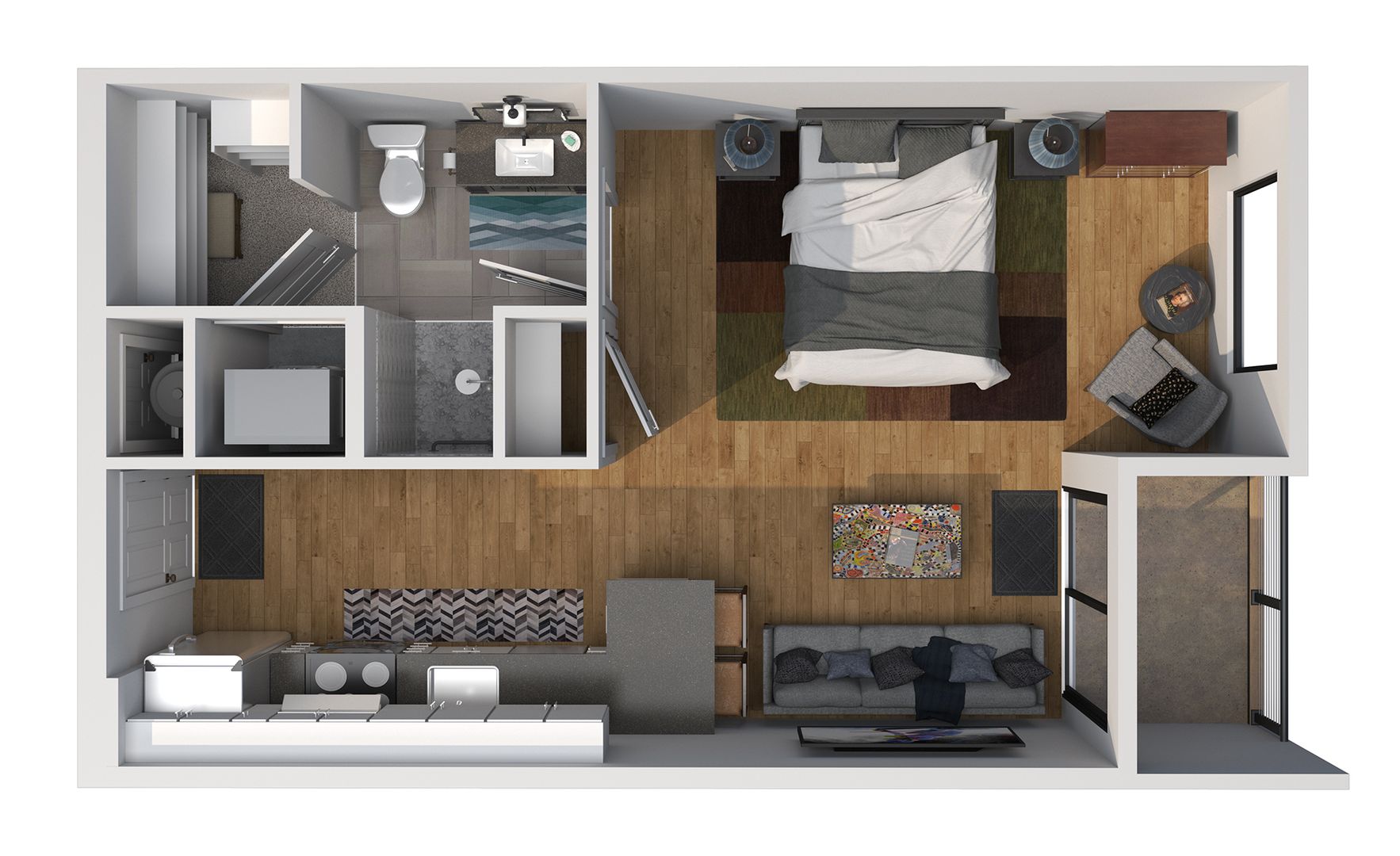 Experience luxurious living in our beautiful studio apartment! This gorgeous space boasts top-of-the-line amenities, including a private balcony, an in-unit washer and dryer, stainless steel appliances, and daily trash valet service. You can appreciate our elegant interiors with their granite countertops, soft-close cabinets, modern finishes, and large walk-in closets.